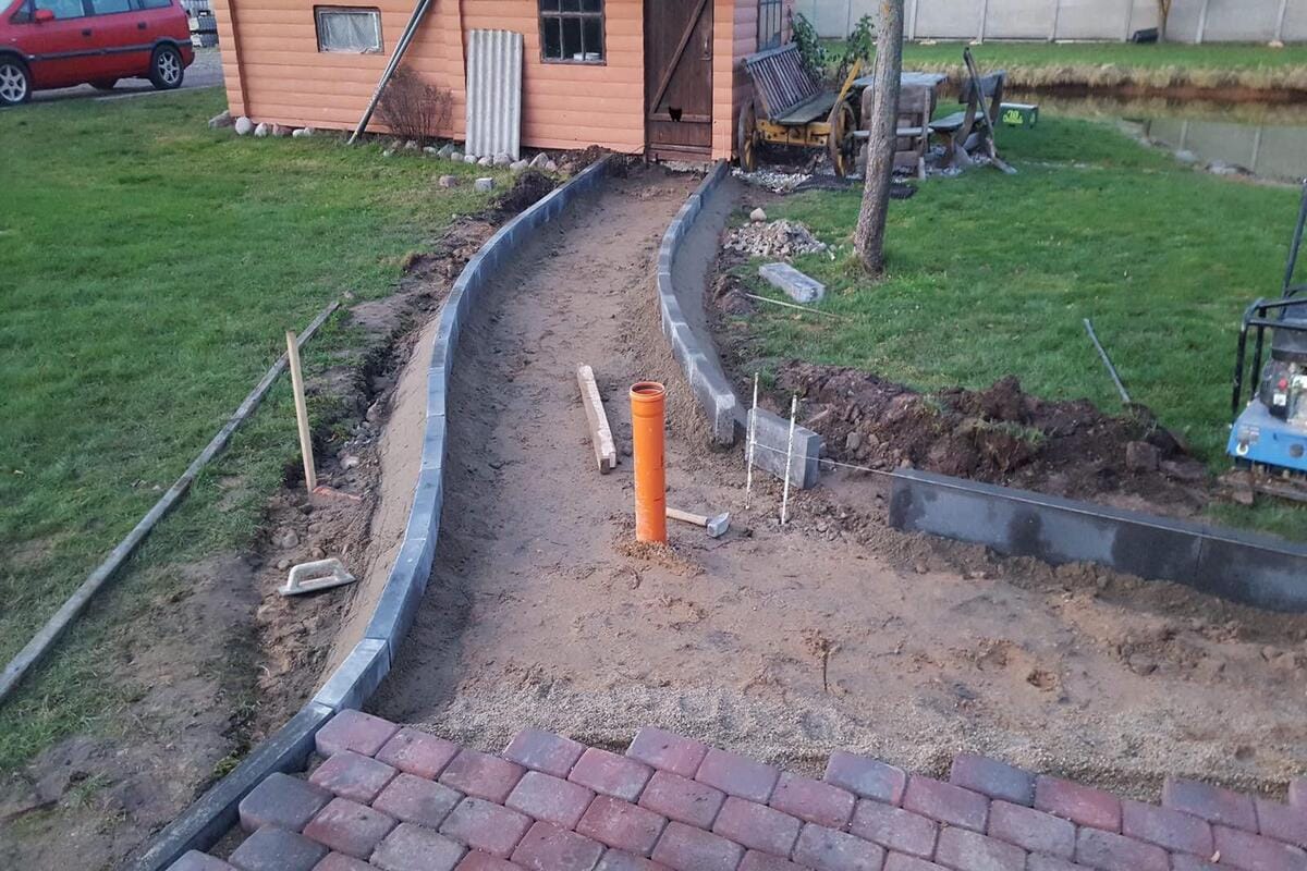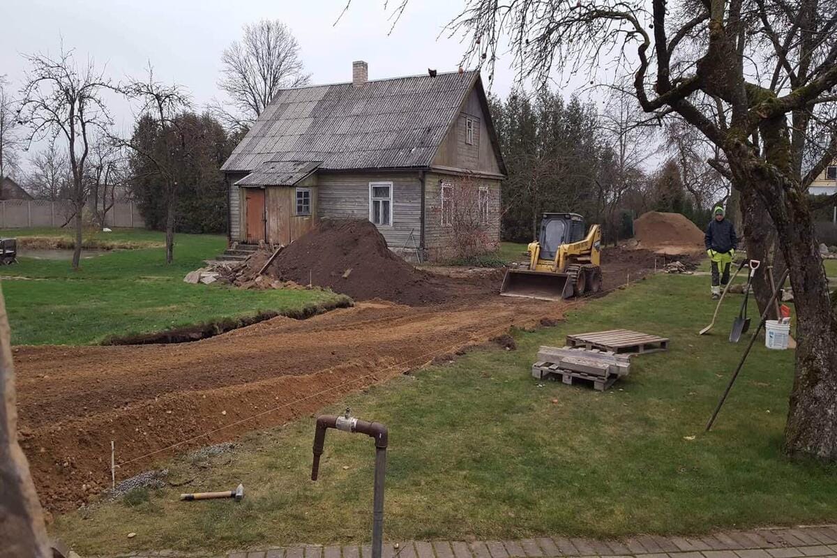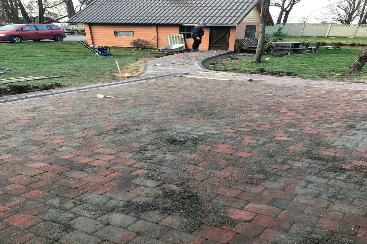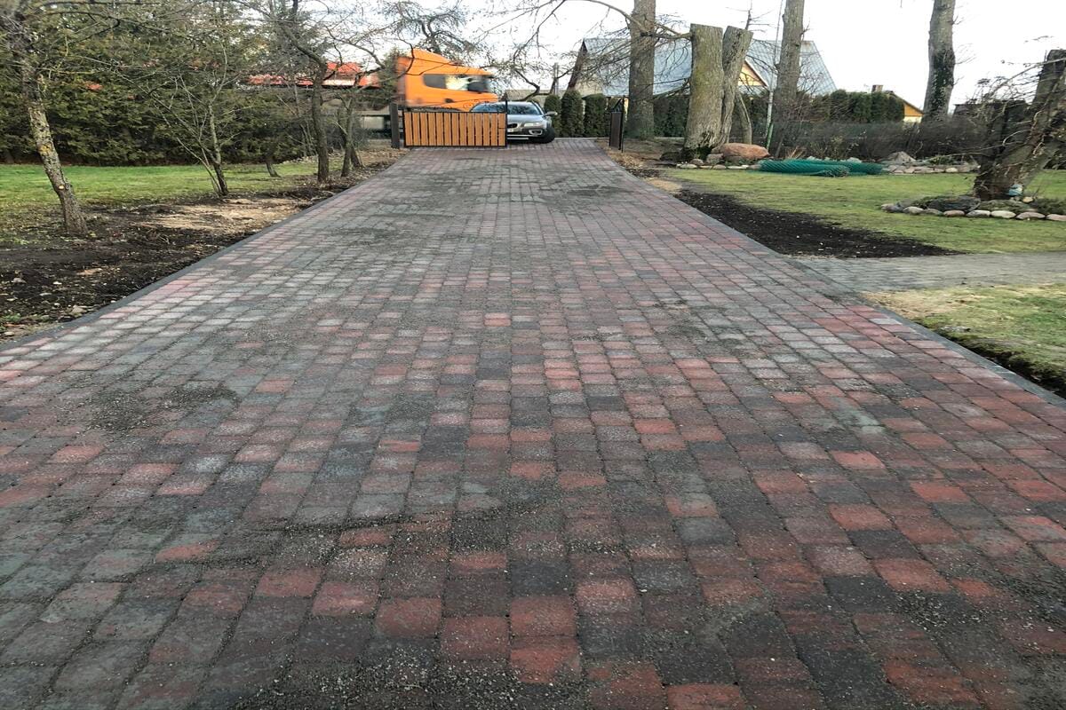 APIE PROJEKTĄ: Pirmiausia buvo įrengta betoninių trinkelių danga, kuri reikalavo kruopštaus pagrindo paruošimo. Po to, atsižvelgiant į lietaus nuotekų valdymą, buvo įrengti inžinerinių tinklų sprendimai, leidžiantys efektyviai surinkti ir nukreipti lietaus vandenį, taip užtikrinant, kad vanduo nesikauptų paviršiuje ir nepažeistų teritorijos. Galiausiai, buvo įrengti kelio ir vejos bortai, kurie ne tik nubrėžia aiškias ribas tarp skirtingų paviršių, bet ir prisideda prie estetinės aplinkos gerinimo bei padeda išlaikyti tvarkingą teritoriją.